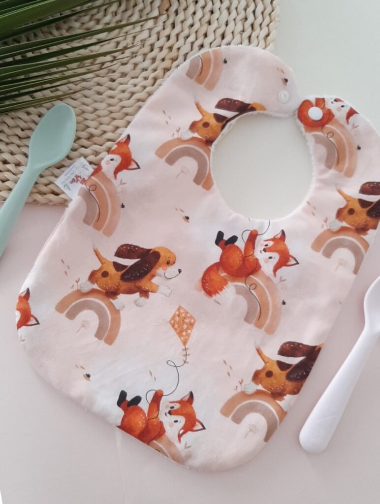 The Essential Everyday BibDiscover the perfect partner for every meal! This bib combines modern style with exceptional functionality. Designed for quick changes, it keeps your baby’s clothes clean without complications.One side features stylish 100% cotton, while the back is made of soft, highly absorbent bamboo terry. Bamboo is naturally antibacterial and breathable, ensuring your baby stays dry and irritation-free, whether during mealtime or teething.