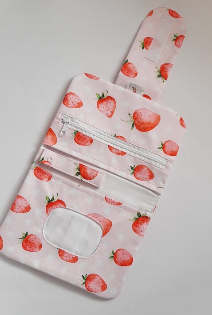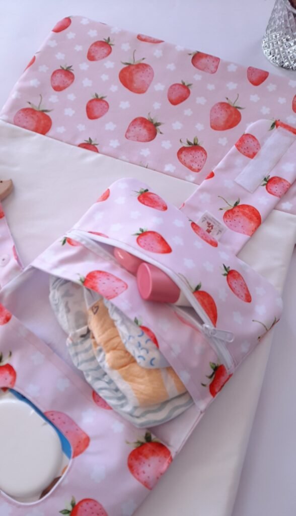 Diaper,wipe holder & changing mat Strawberry girl collection