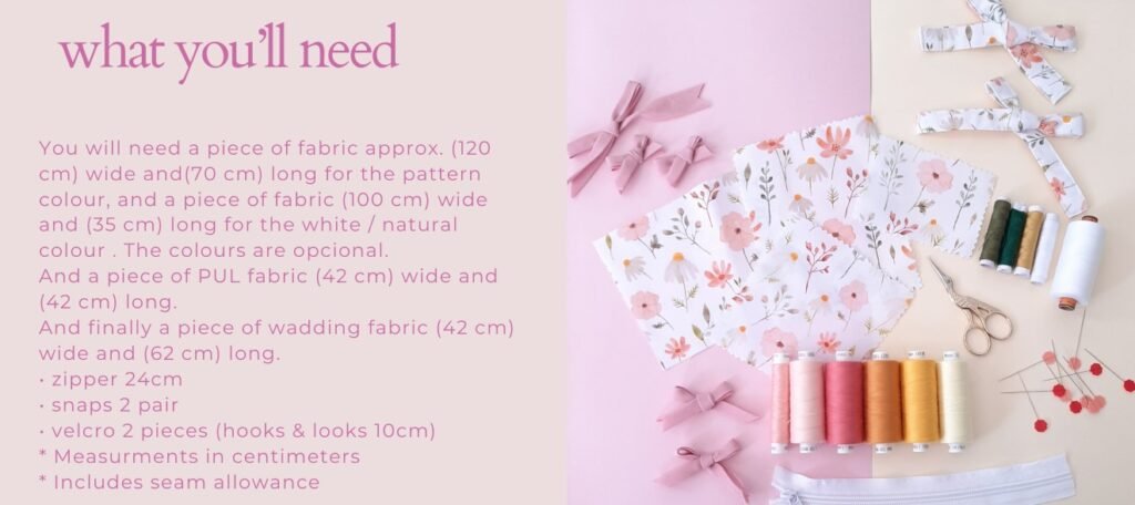 Materials: Includes a full list of material requirements for both the Diaper Clutch and the bonus Changing Mat.