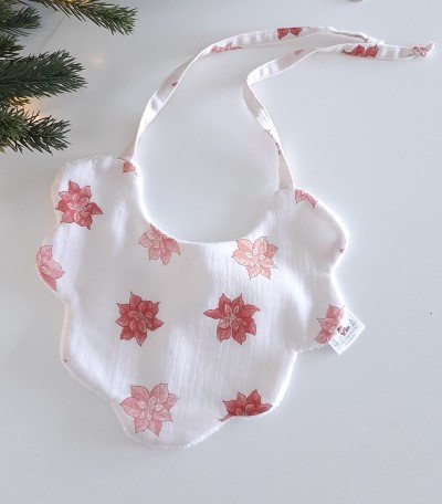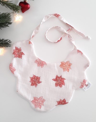 Flower Shaped Bib (neck-tie) – Organic Double Gauze & Bamboo Christmas time